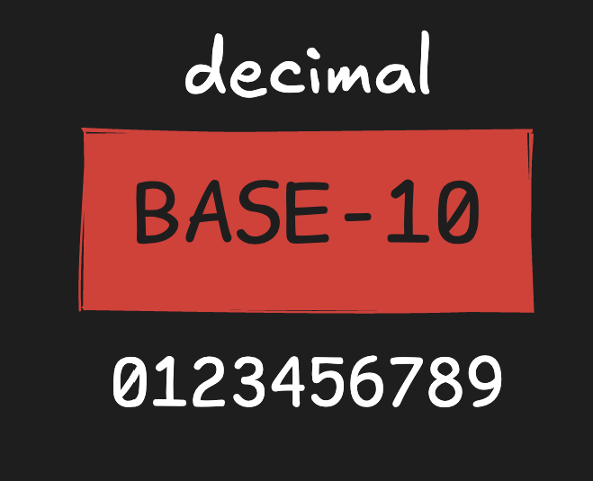 | Decimal | 10 | 0-9 |