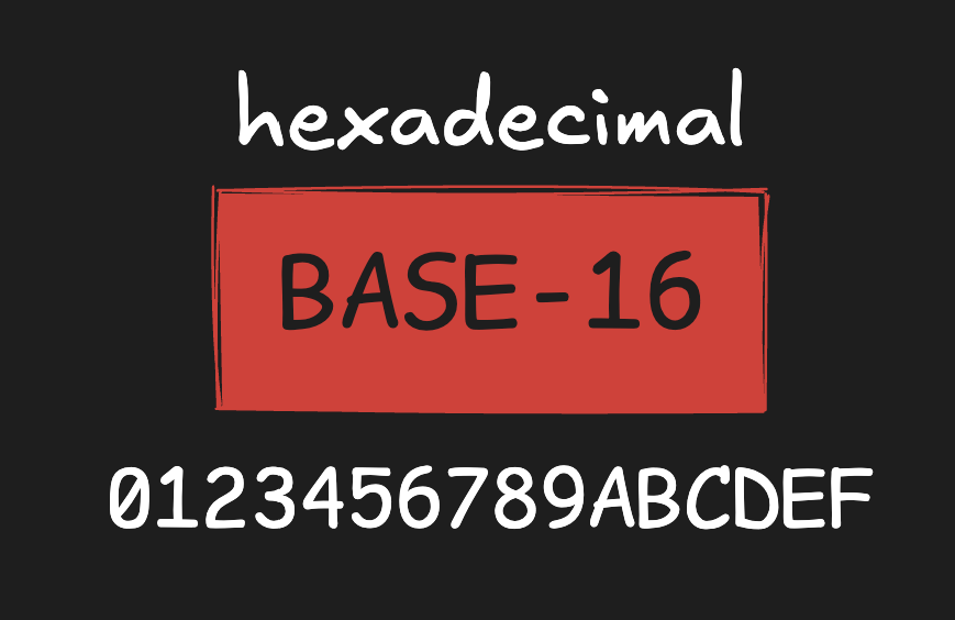 | Hexadecimal | 16 | 0-9, A-F |